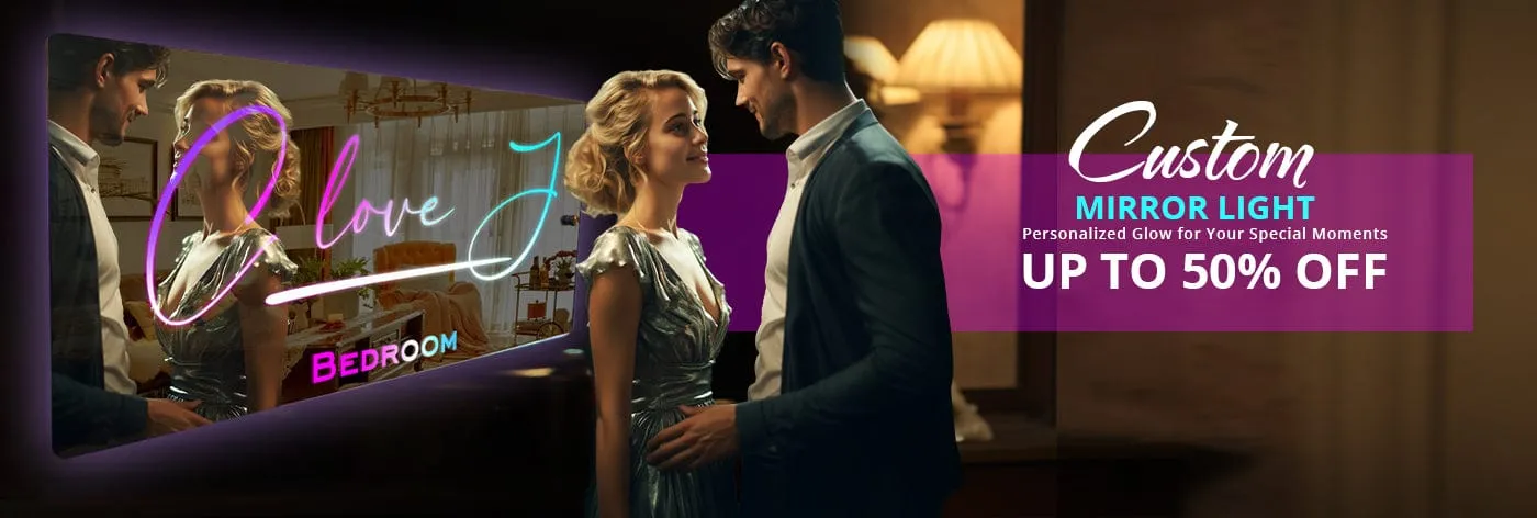 Custom Name Mirror Light with Anniversary Date Personalized Gift for Her-50% -
