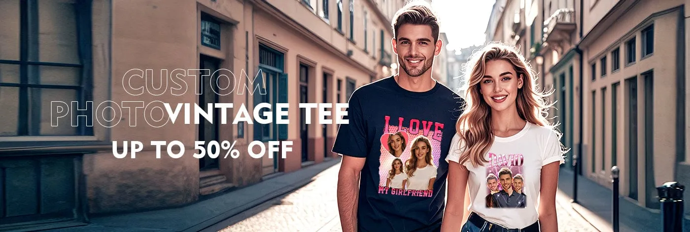 Personalized Photo Vintage Tee Custom Name and Photo T-Shirt Vintage Couple T-shirt-50% -