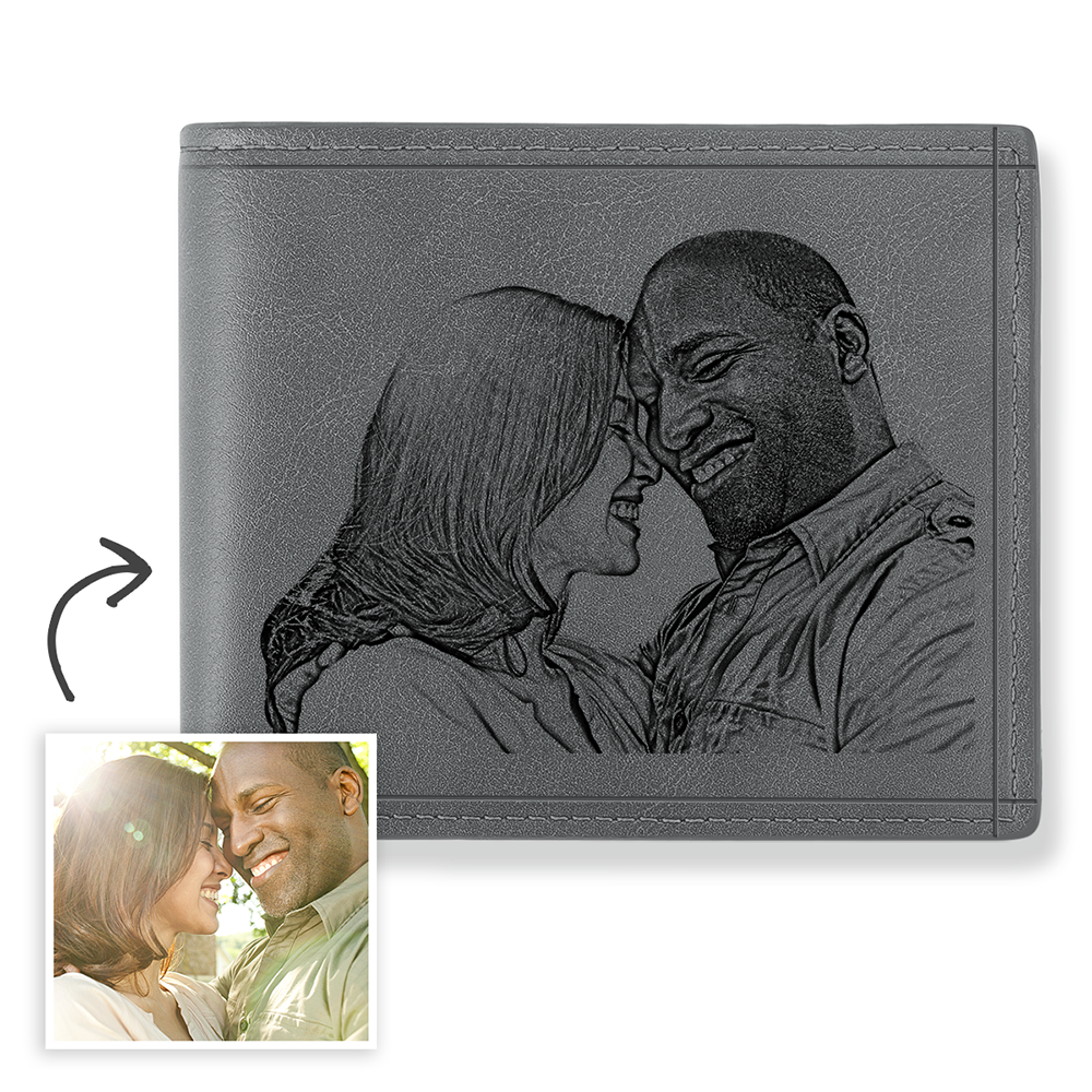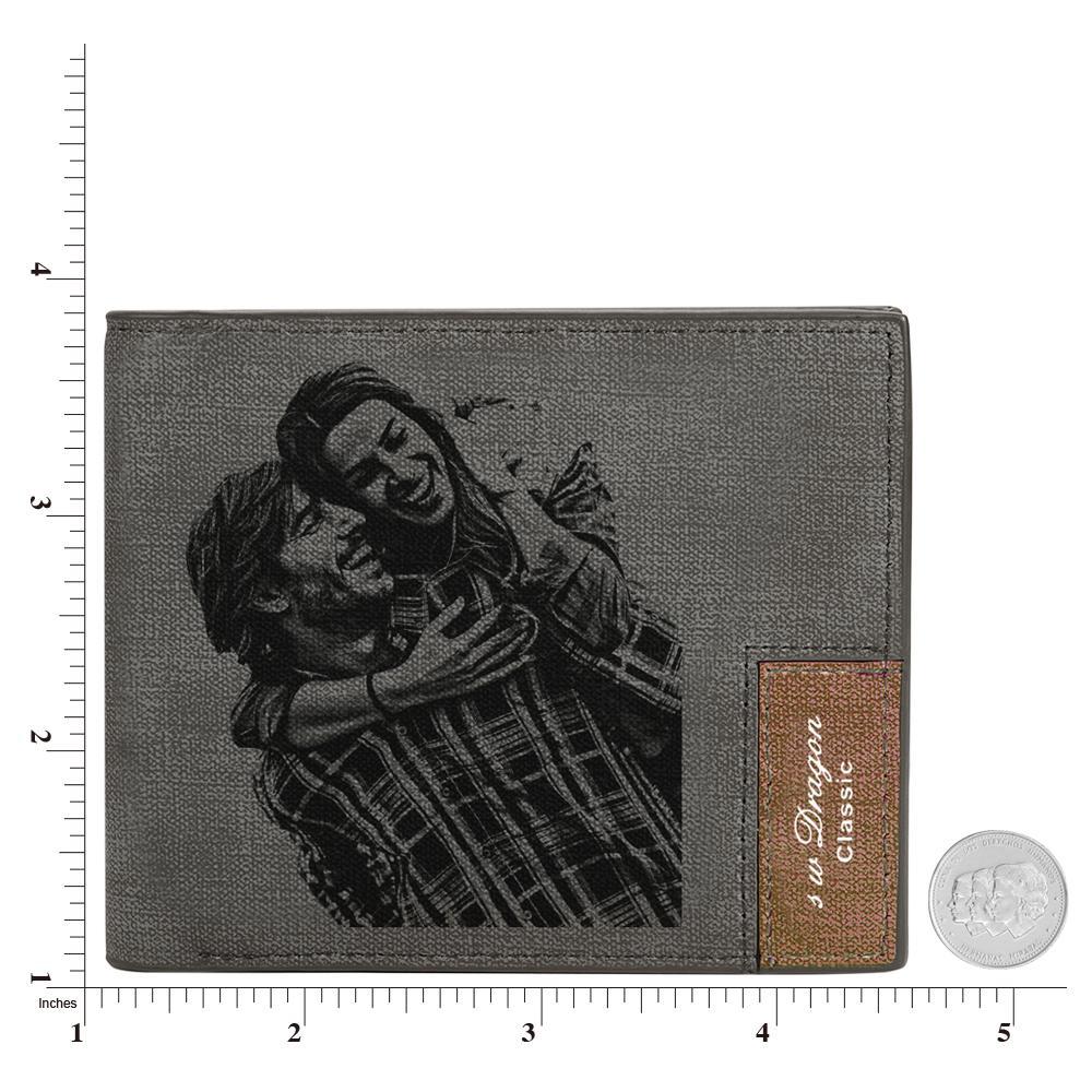 Men's Wallet Custom Photo Engraved Wallet Grey Leather Personalized Wallets-20% -