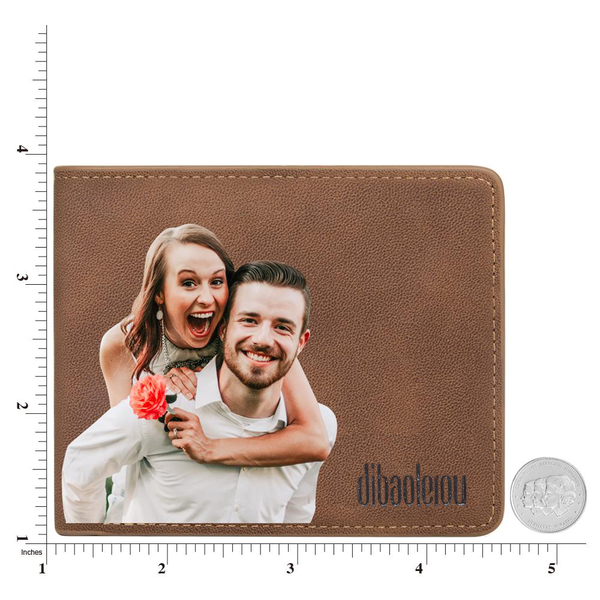 Men's Custom Engraved Photo Wallet Brown Leather-16% -