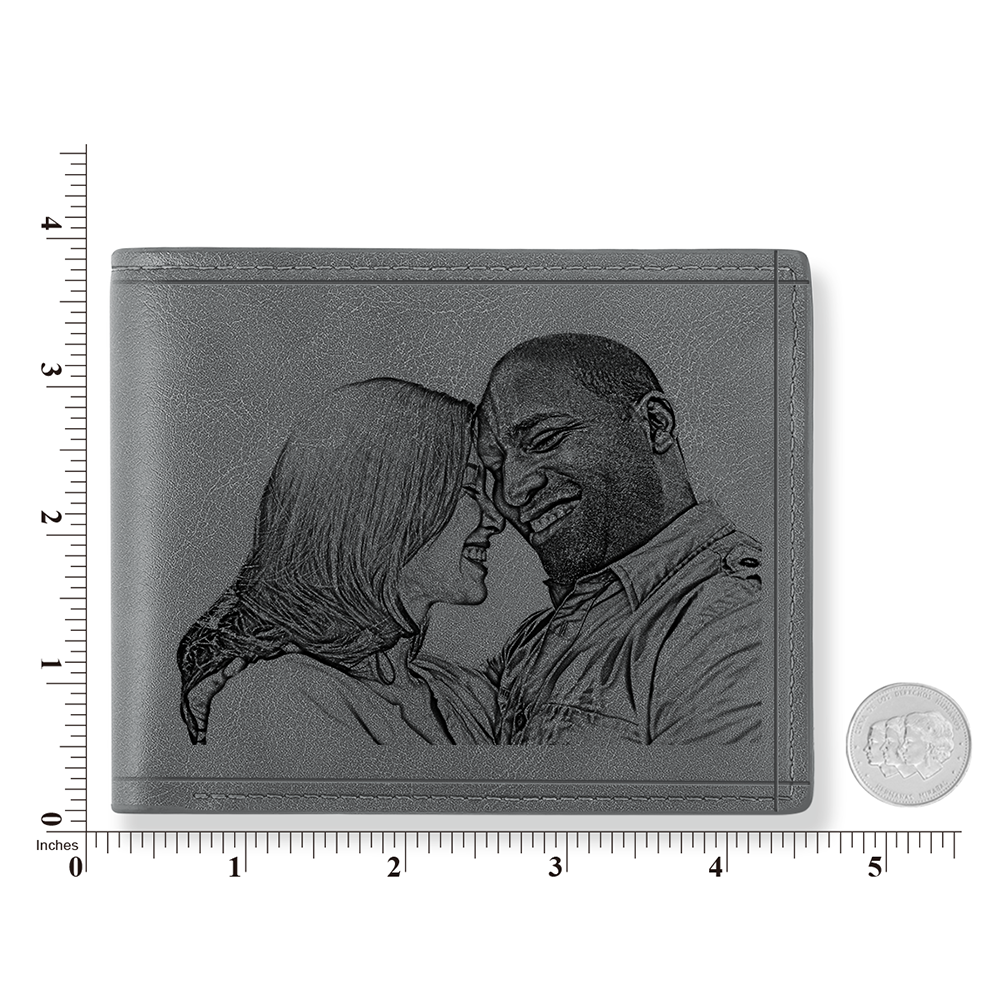 Men's Custom Photo Engraved Wallet Grey Leather-25% -