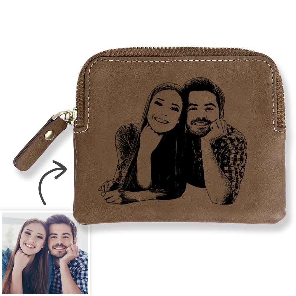 Custom Photo Engraved Zipper Wallet Coin Purse Card Case Brown Leather-16% -