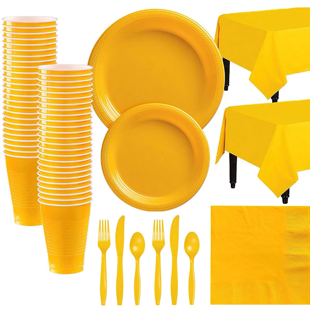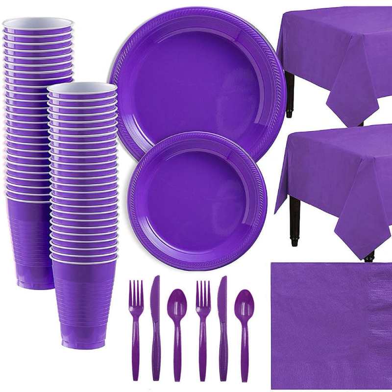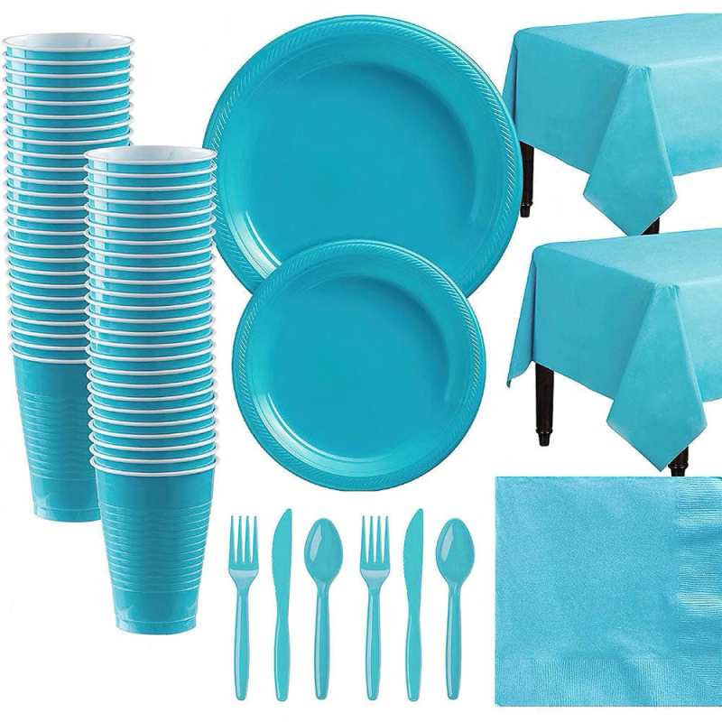 This disposable tableware plate kit cover is made of Polyethylene which can serve up to 20 guests. This disposable tableware set is very versatile and easy to clean up after a party. Save clean-up time by throwing the plates cups and napkins out after use, while still enjoying the decorative and elegant accent they add to your event.