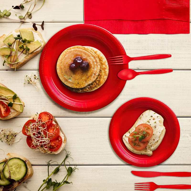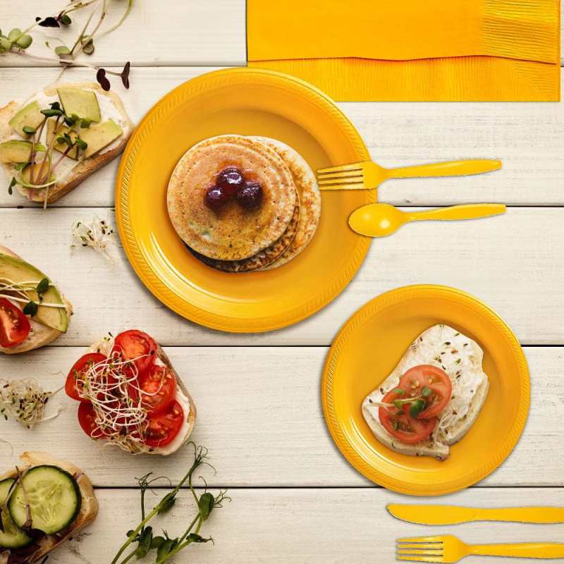 The disposable plates set is your great choice for daily meals or restaurants, food trucks, to-go orders, special events, gatherings, weddings, parties, picnic and other types of foodservice environments.