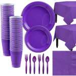 KIT FOR 20GUESTS - This party dinnerware set comes with including 20 9" dinner paper plates, 20 7" paper dessert plates, 20 16oz paper cups, 20 napkins, 20 spoons, 20 forks, and 2 tablecloths 52x86.6in.