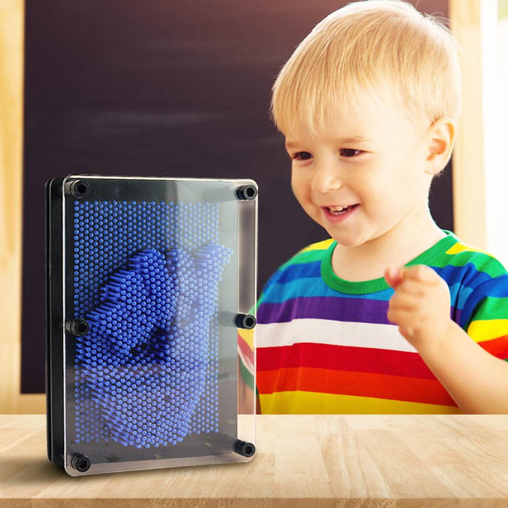 Features a thick clear plastic front and pinscreen design Simply put use your hands, face, feet or any everyday objects like toys and shapes pressed onto the pins, which will create amazing 3D sculptures.