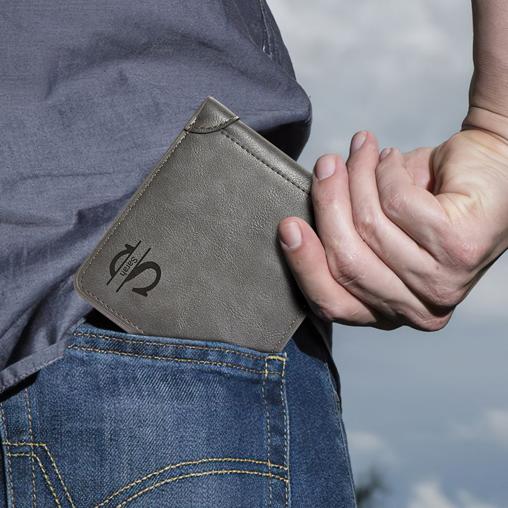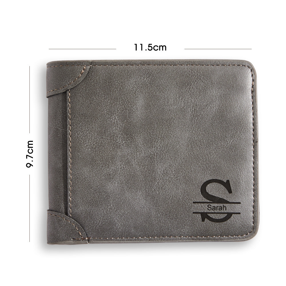 Anniverary Gifts - Men's Custom Engraved Wallet Custom Name Wallet Grey Leather