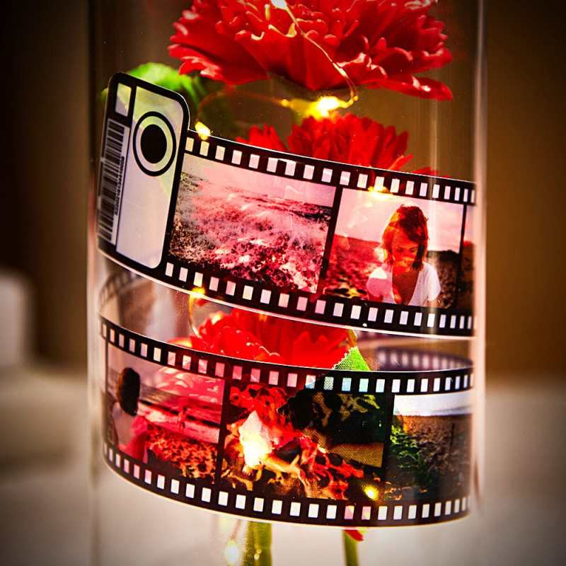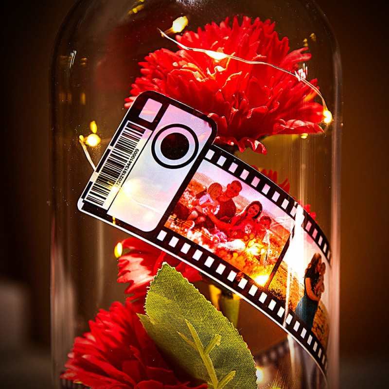 Mother's Day Gifts Carnation in Glass with Camera Film Custom Led Lamp