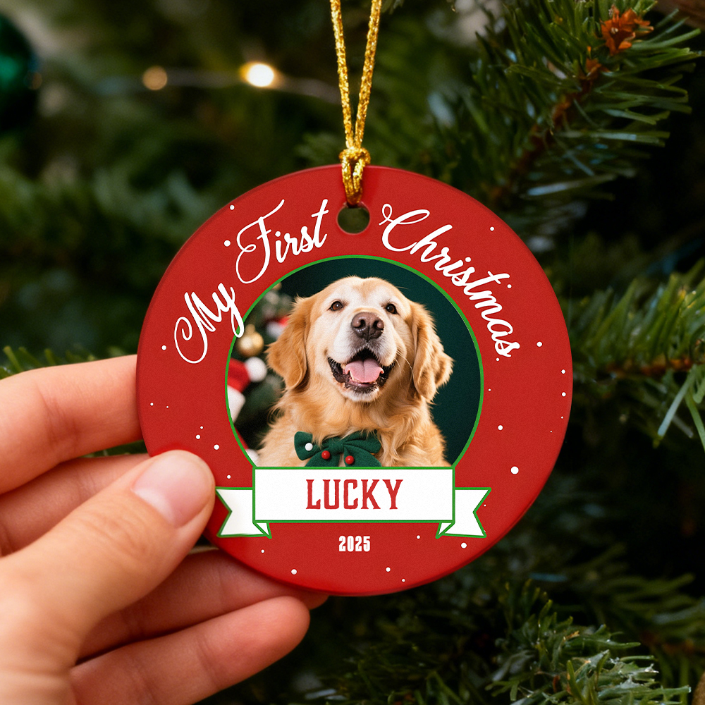 Cat First Christmas Ornament, Cat Picture Ornament, Kittens 1st Christmas Ceramic Keepsake, Pet Photo Print Ornament