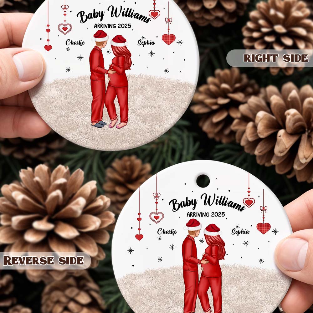 This ceramic ornament features an expecting parents illustration, capturing the warmth of welcoming a new baby. A thoughtful gift for parents-to-be.