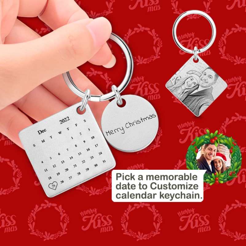 Christmas Gifts Custom Calendar Keychain Engraved Keychains With Photo