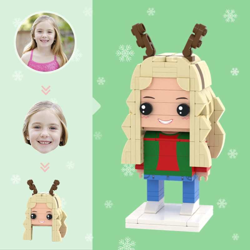 Christmas Gifts Custom Head Brick Figures Personalized Girl with Antlers Brick Figures Small Particle Block Toy