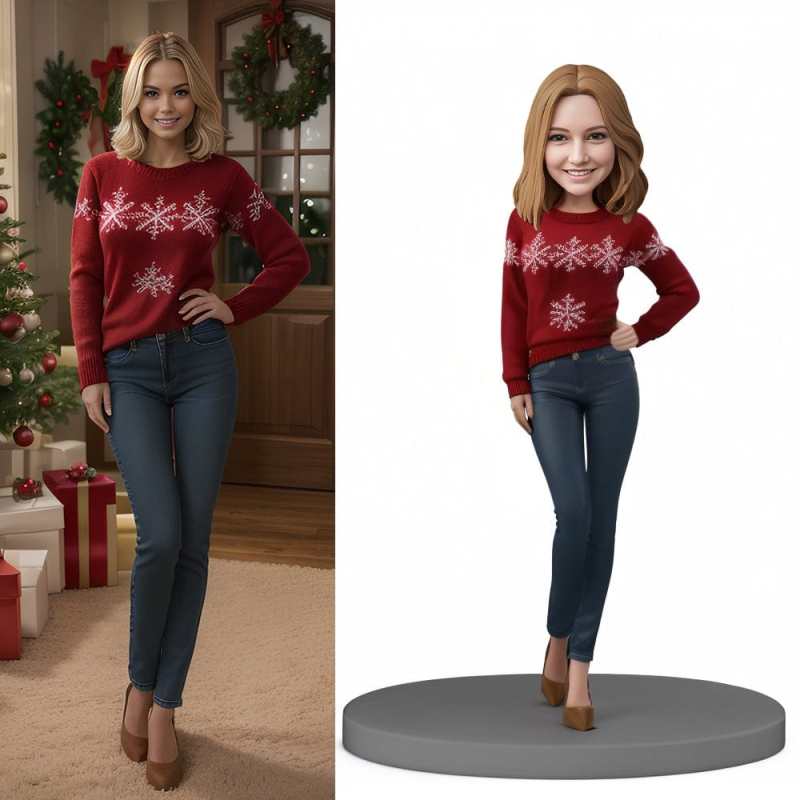 The production scope doesn't include the big decorations of the image, such as tables, chairs, musical instruments, or animals, etc. The size is the stature of the person standing from head to toe, isn't the actual height of the person while sitting or lying. The Stationary Head can make for any hairstyles,and the Bobble Head only can make short hairstyles.