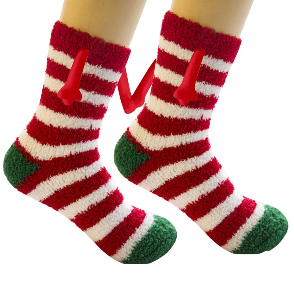 The arms on both sides of these Christmas hand-in-hand socks have built-in magnets that create an attraction when you get close, allowing you to hold hands with your partner. Made from high-quality material, these socks are both comfortable and durable. Get a pair for yourself or give it as a gift to someone special. Spread some joy with our funny magnetic hand-in-hand Christmas socks!