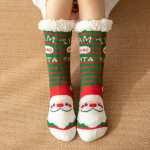 Christmas Socks Plush Coral Fleece Winter Home Floor Socks Green Striped Slipper Socks - Santa Claus