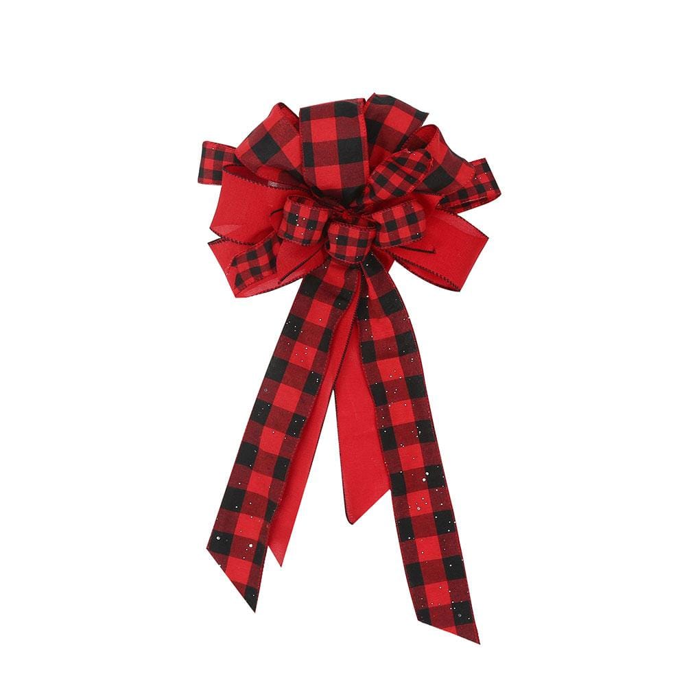 Christmas Tree Bow Toppers Red Buffalo Plaid Xmas Gift