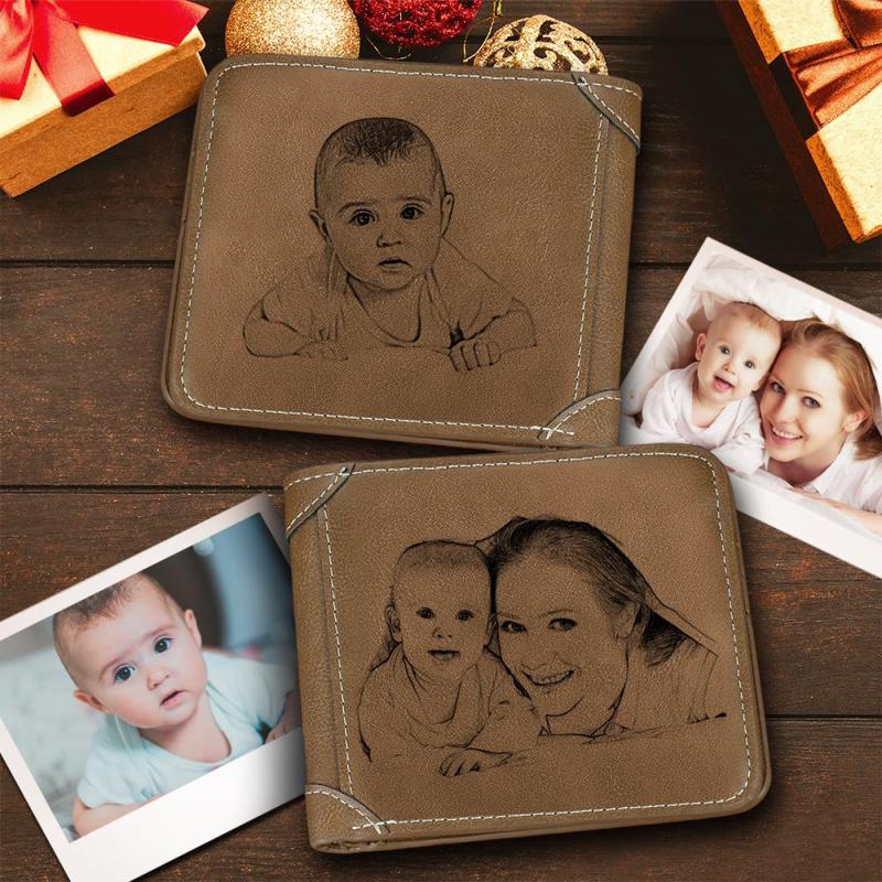 Custom Double - Sided Photo Engraved Wallet Brown Leather