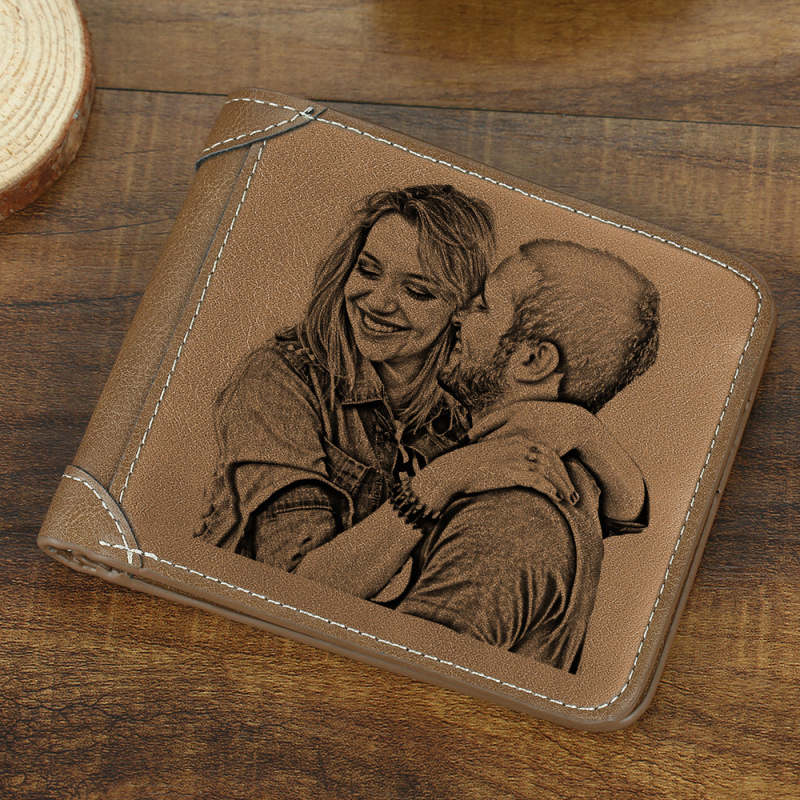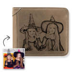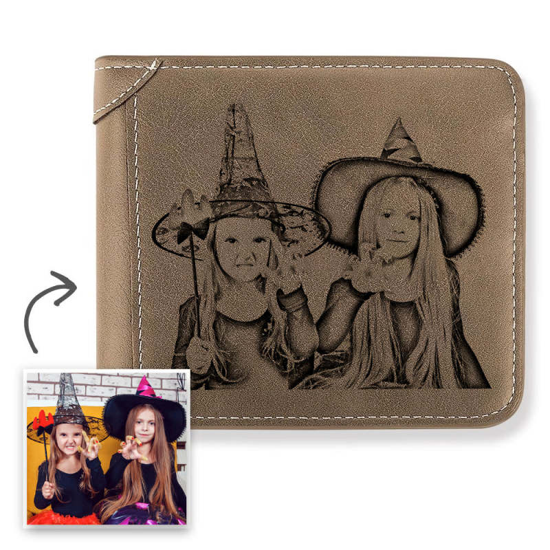 Halloween Gift | Men's Custom Engraved Photo Wallet Brown Leather