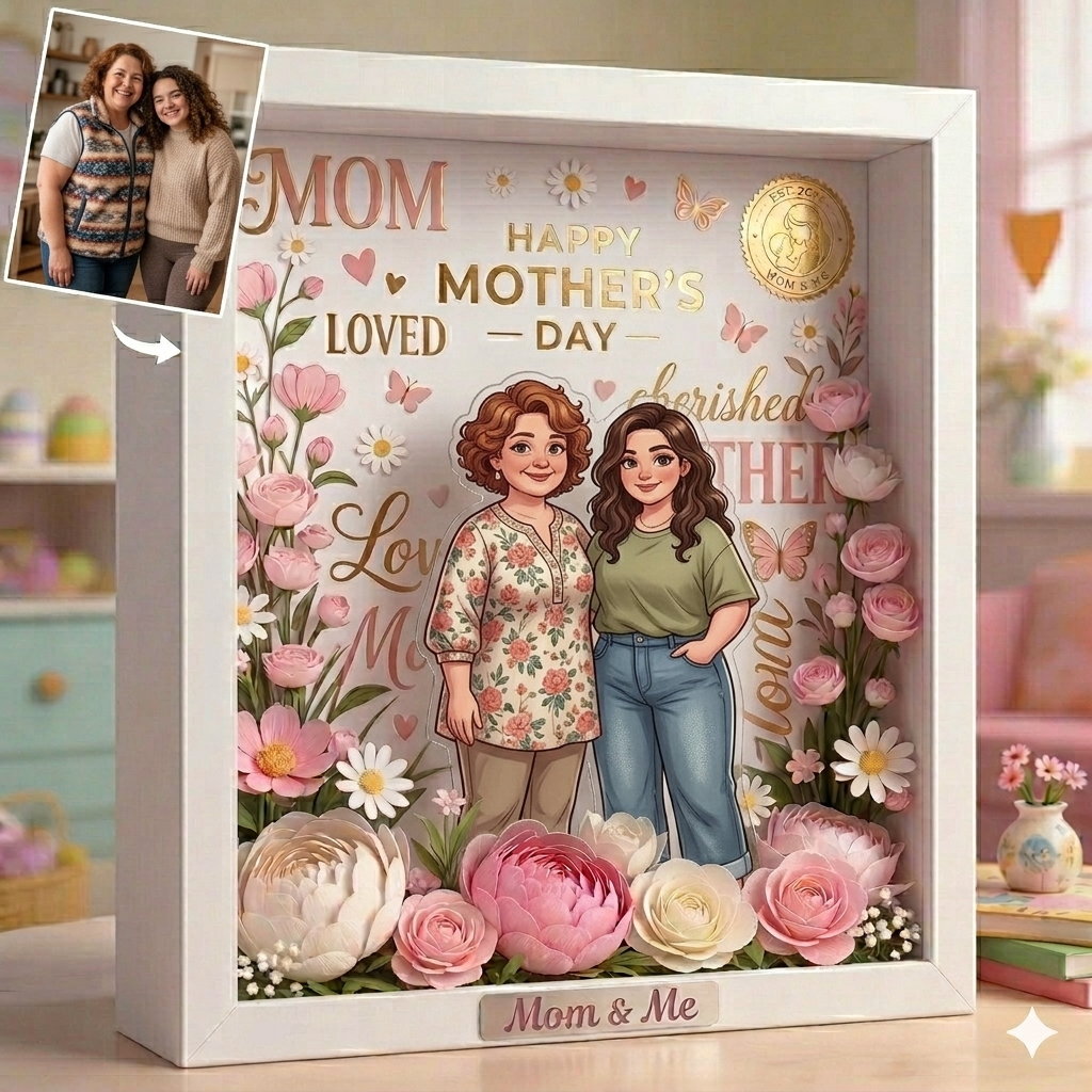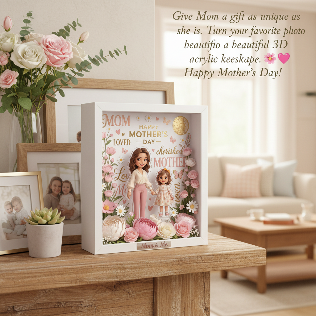Celebrate the unbreakable bond between you and your mom with this Custom AI Cartoon Acrylic Frame. This isn't just a picture frame; it's a piece of art. We use advanced AI technology to transform your cherished photo into a stunning, vibrant cartoon illustration, printed on high-quality acrylic and finished with a personalized engraving.