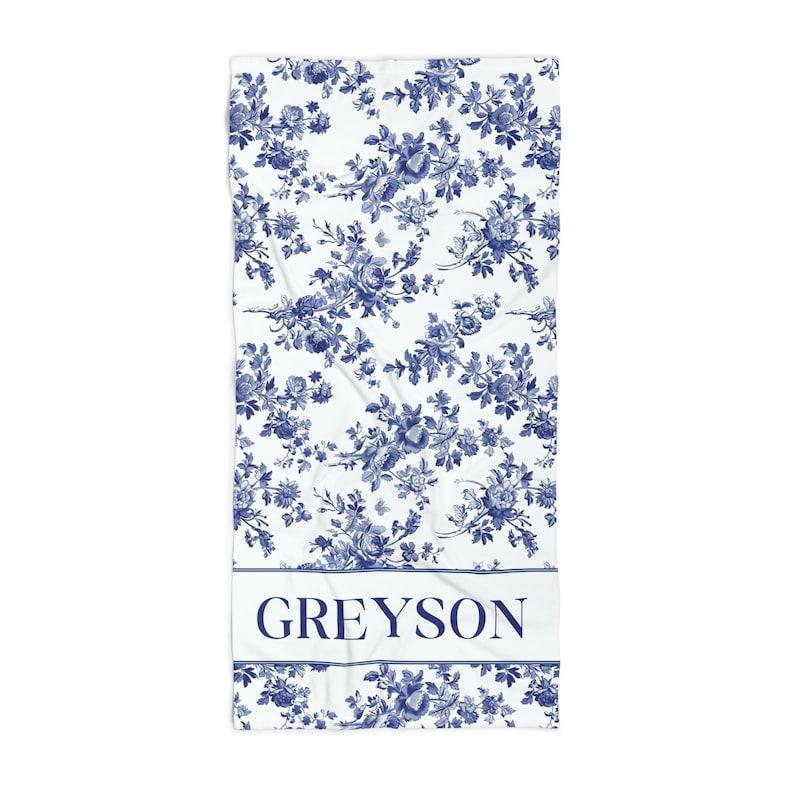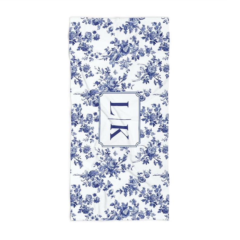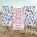 These beautiful personalized beach towels make the perfect gift for your loved one. Choose from pink or blue toile de jouy and customize these towels with a name or monogram. These towels are perfect for the beach or the pool.