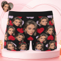 Valentine's Day Gifts Custom Big Face Boxer Shorts Colorful Waistband Boxer Briefs Red and Pink Hearts Gifts For Him