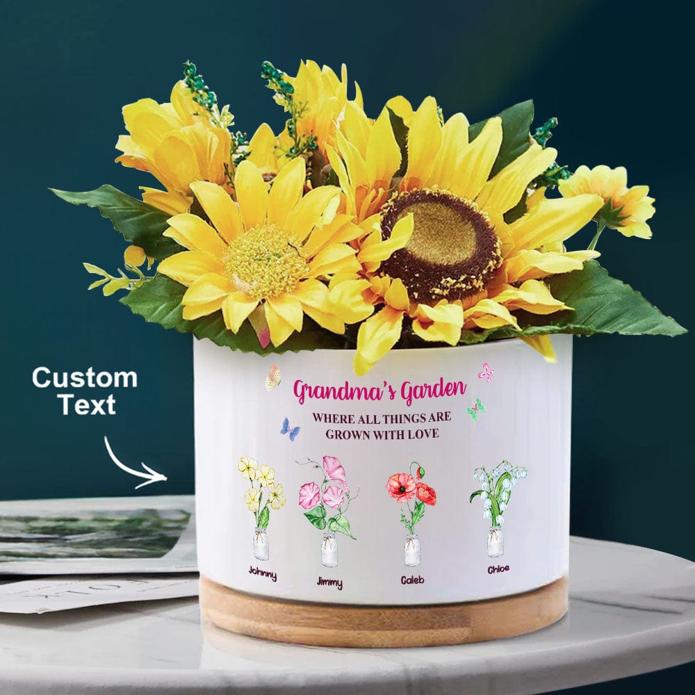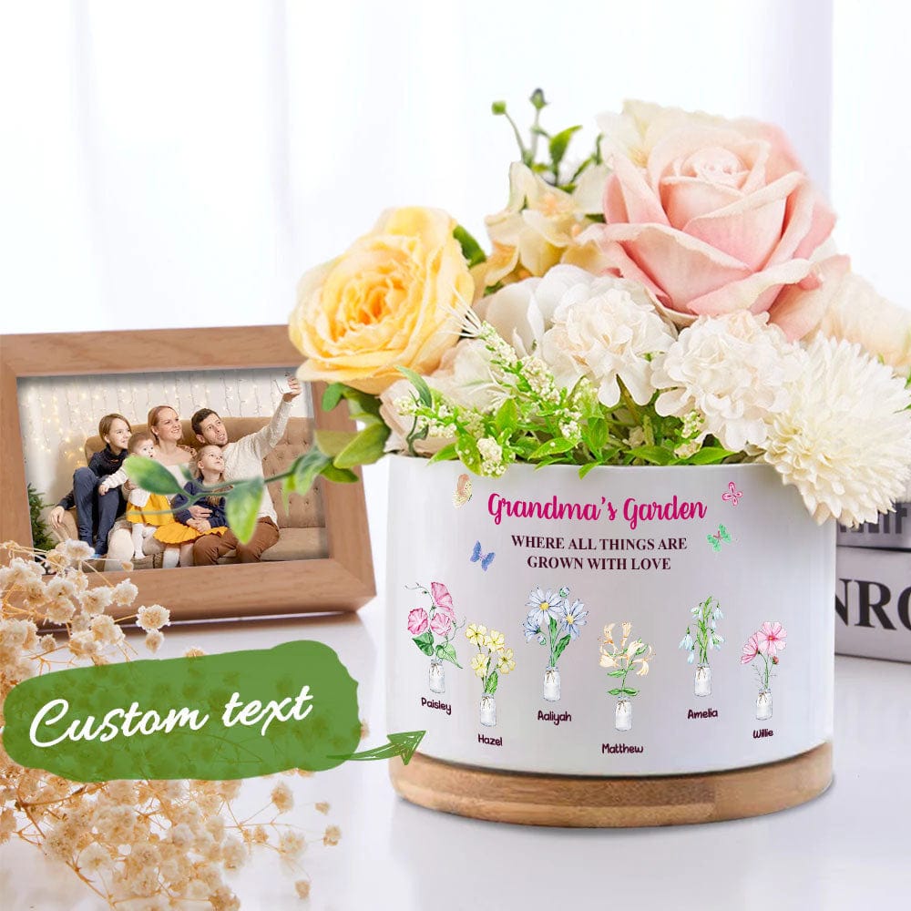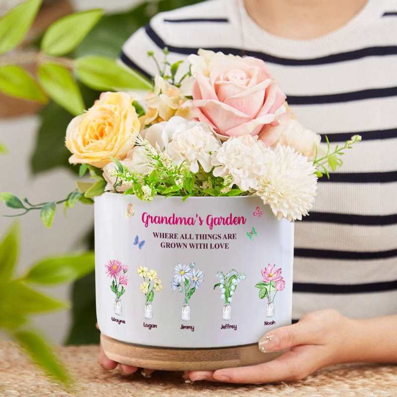 Custom Birth Flowers Pot Personalized Name Ceramic Plant Pot Mother's Day Gifts