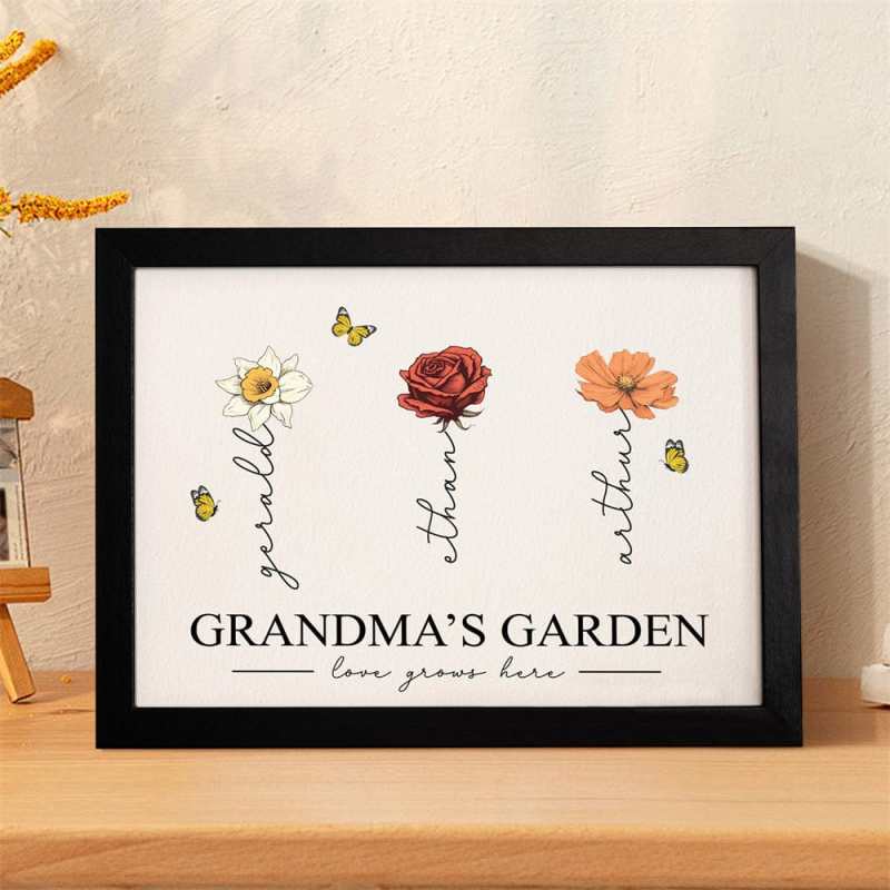• Personalized Design: Each wooden photo frame features a charming garden design adorned with birth month flowers. Add the names of your beloved grandchildren to make it truly personalized and special.