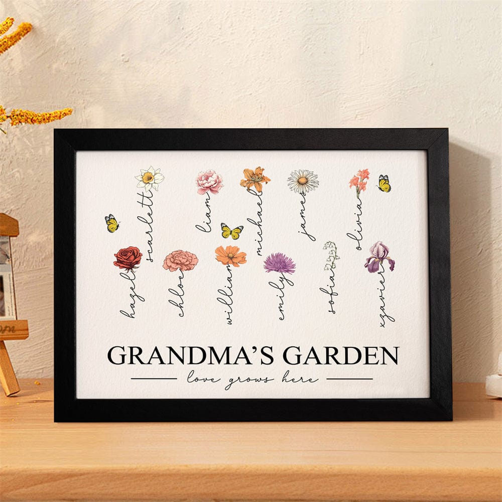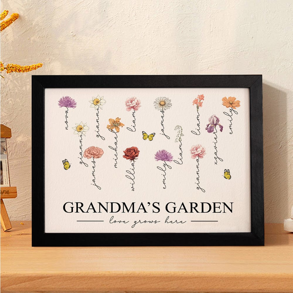 Custom Birth Month Flowers Garden With Grandkids Names Love Grows Here Personalized Wooden Photo Frame Mother's Day Gift