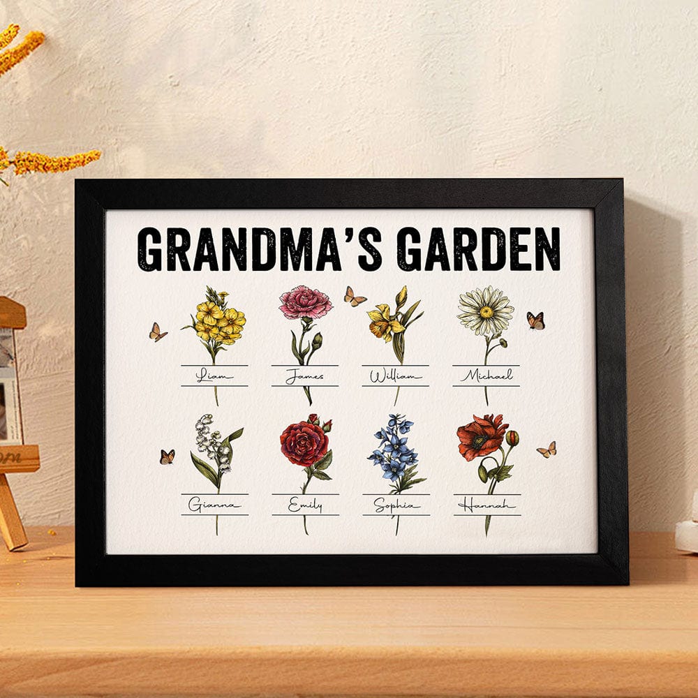 Custom Birth Month Flowers Garden With Grandkids Names Personalized Wooden Photo Frame Grandma's Garden Mother's Day Gifts