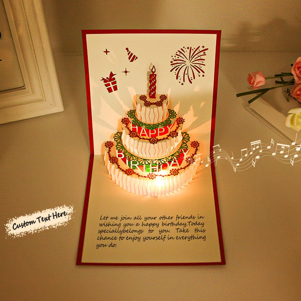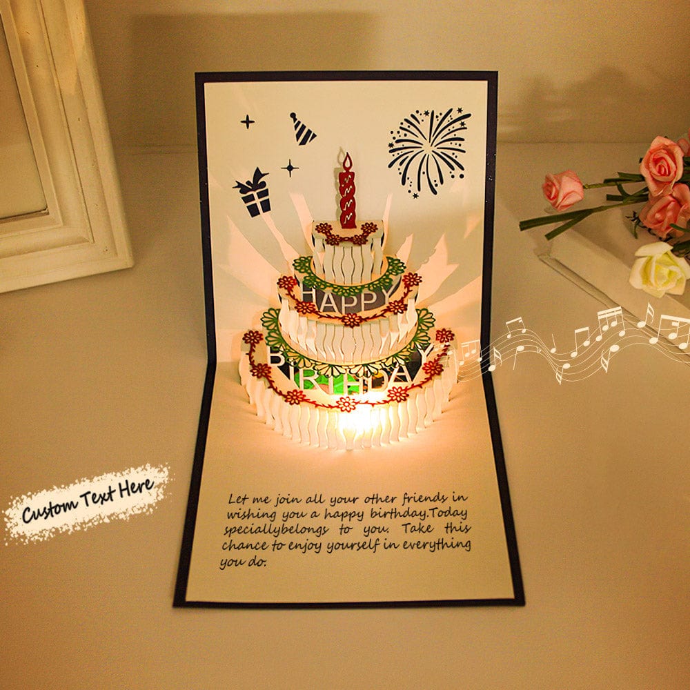 We can imagine that the smile and surprise on his face when the cards pops up with a 3D good looking birthday cake and it lights up and plays the warm song 'happy birthday to you', that's a magical and unique birthday greeting to your families and friends.