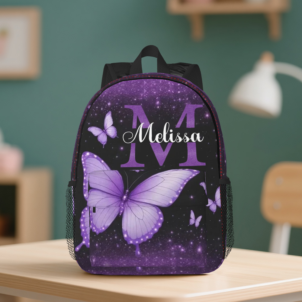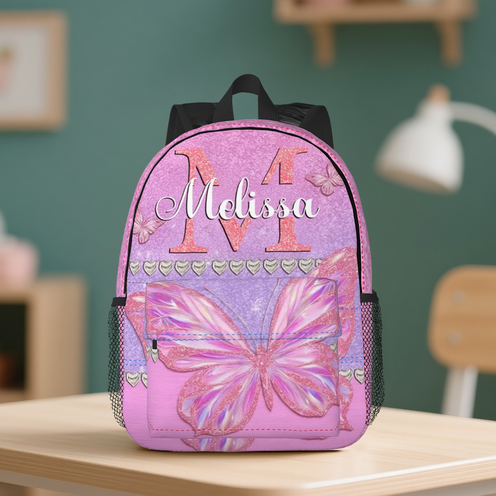 Custom Butterfly Glitter Backpack, Butterfly Name Backpack For Girls, Back to School Gift,Birthday Gift Girls