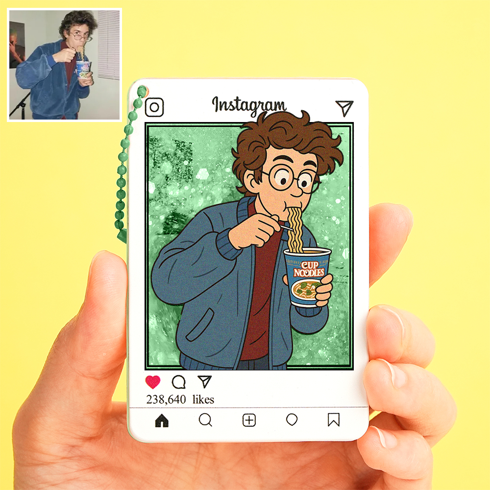 Turn your favorite photo into a unique cartoon-style Instagram-themed glitter keychain! With a trendy design and sparkling liquid inside, it’s eye-catching, fun, and totally personal.