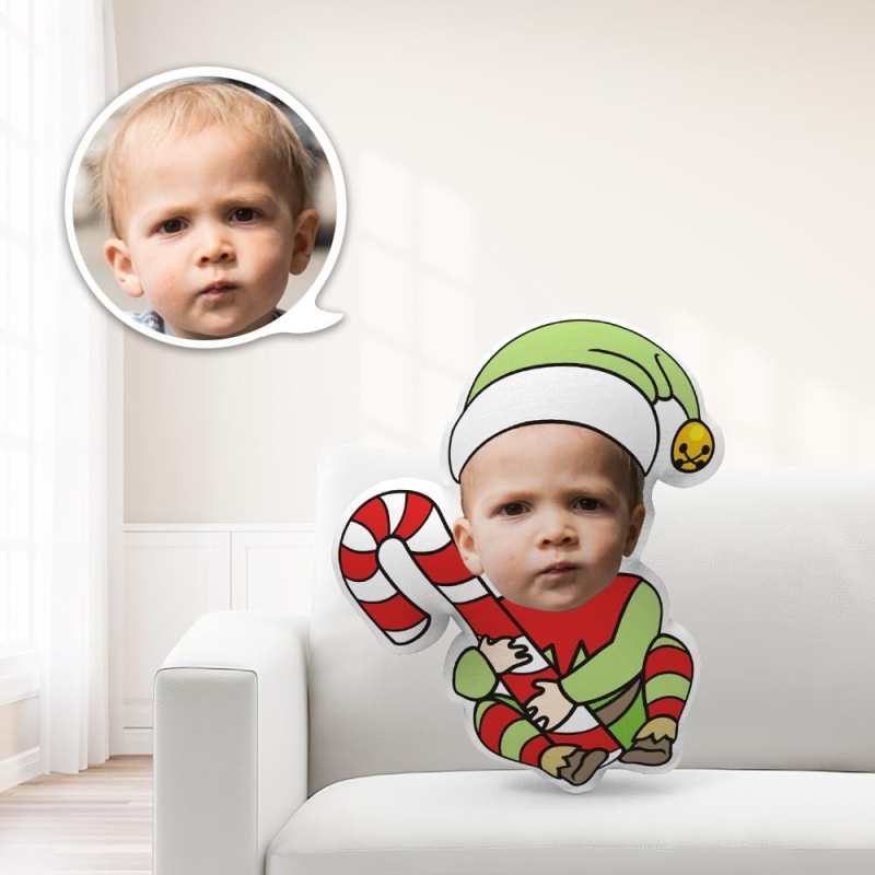 Custom Christmas Elf Holding Candy Minime Throw Pillow Unique Personalized Minime Throw Pillow Give Your Child The Most Meaningful Gift