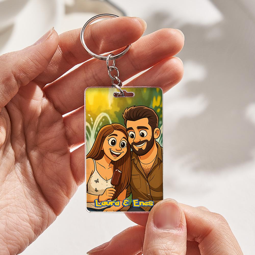 Custom Classic Anime Style Couple Keychain Perfect Gift Personalized Cartoon Gift with Photo & Text Acrylic Keychain Gift