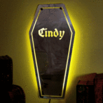 Introducing our Coffin Mirror Neon Sign, where personalization meets the macabre. Illuminate your space with your own name, casting a spellbinding glow that's uniquely yours. This Gothic-inspired piece adds an eerie elegance to any room, making it a perfect accent for lovers of the dark aesthetic. Whether as a holiday gift or a statement piece, let your space reflect your individuality with this hauntingly beautiful creation.Transform your surroundings with this captivating blend of artistry and luminosity.