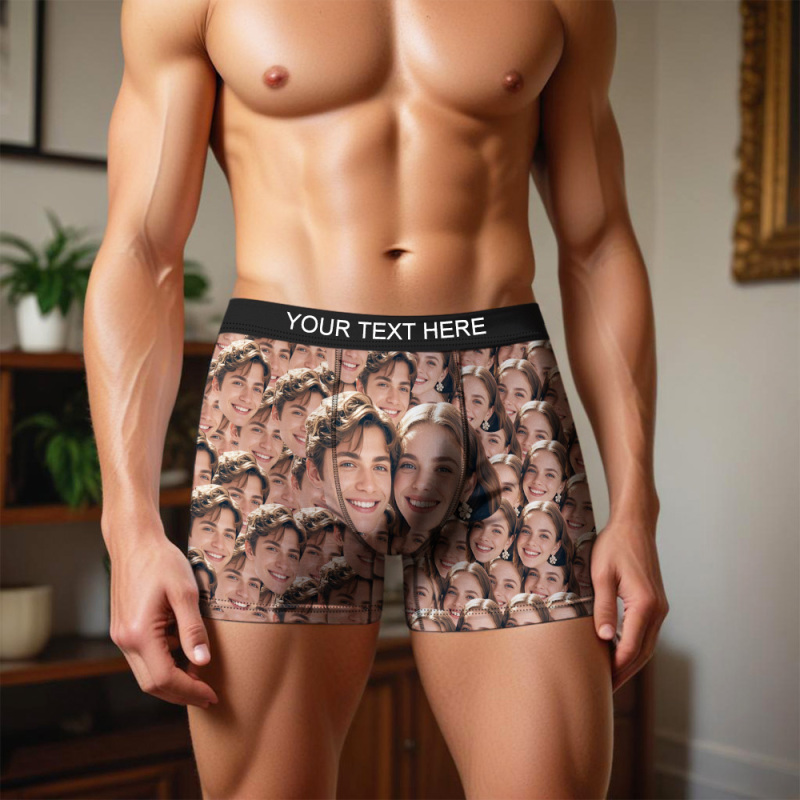 Custom Couple Seamless Face Men's Boxer Shorts Personalized Face Boxer Briefs