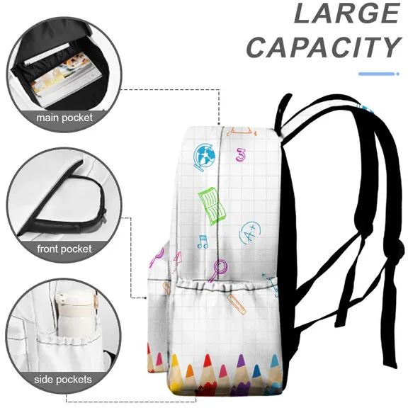 Versatility: This backpack has a large storage space and can be used to carry school supplies such as books, notebooks, folders, binders and so on.