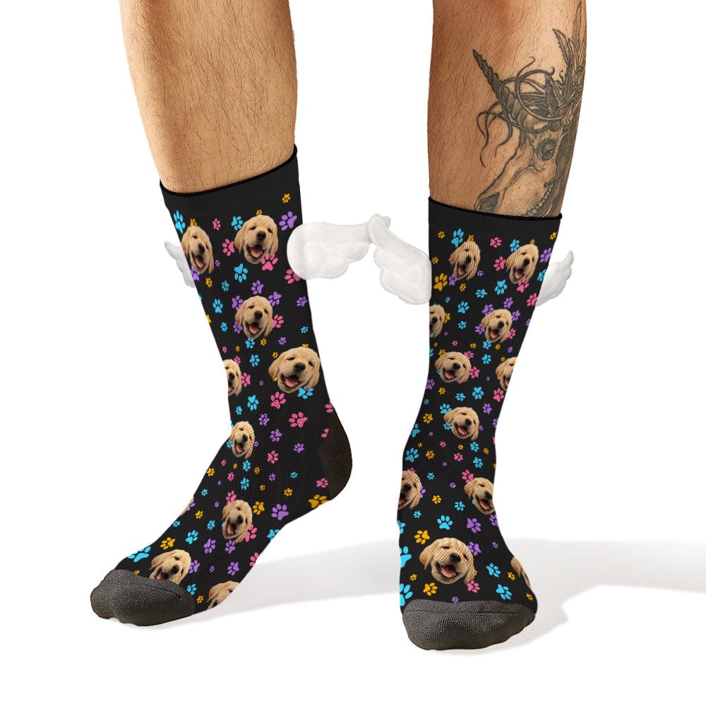 Custom Dog Face Socks Colorful Dog Paw Prints 3D Magnetic Wing Socks for Pet Lover