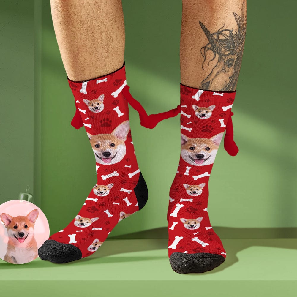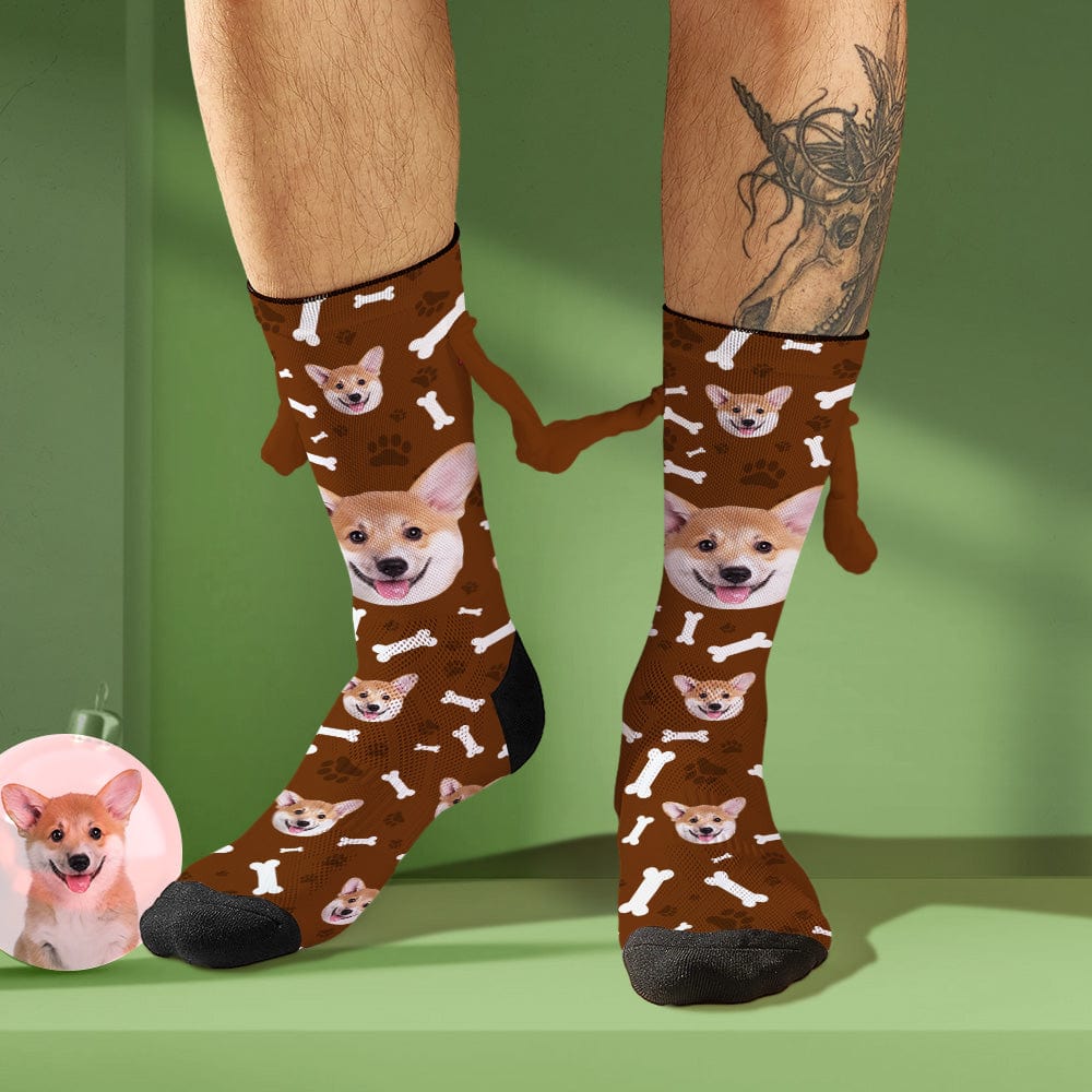 Custom Dog Face Socks Funny Doll Mid Tube Socks Magnetic Holding Hands Socks Christmas Gifts