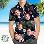 Custom Face All Over Print Men's Hawaiian Shirt Flamingo Flower and Leaves Gift for Him