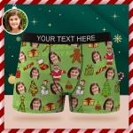 Custom Face Boxer Briefs Personalized Green Underwear Christmas Gift for Him