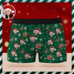 Custom Face Boxer Briefs Personalized Green Underwear Santa Claus and Elk Merry Christmas Gifts for Him