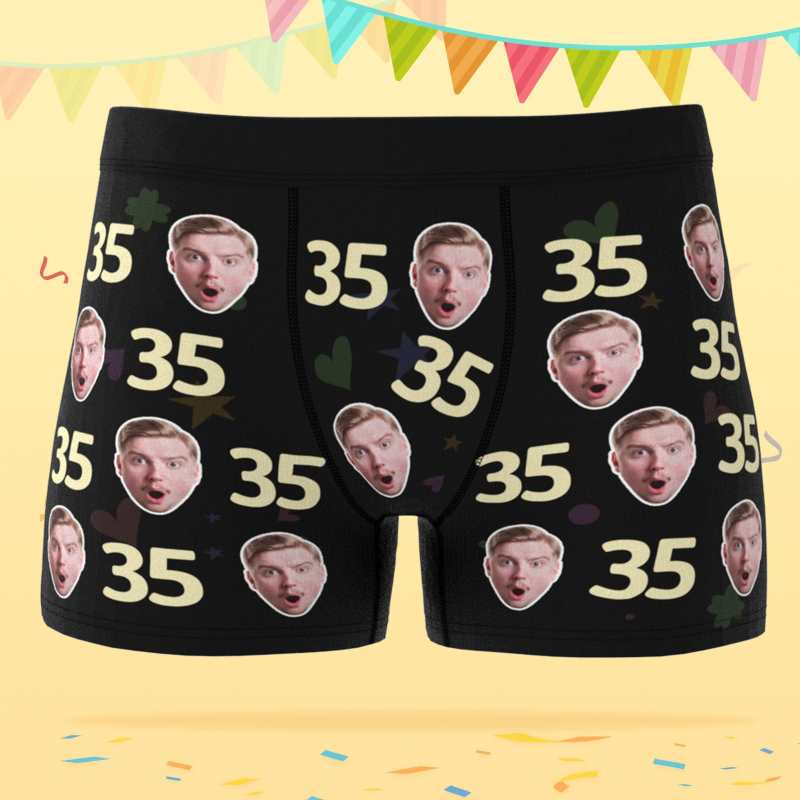 Custom Face Boxer Shorts with Age Personalized Boxer Birthday Gift for Husband