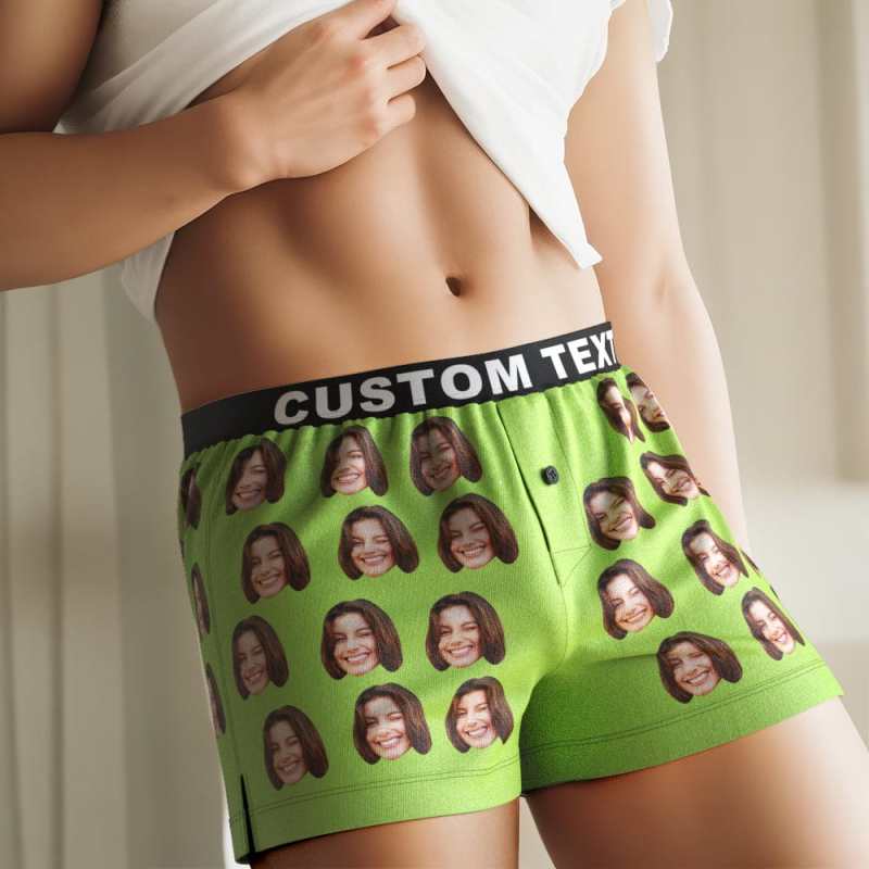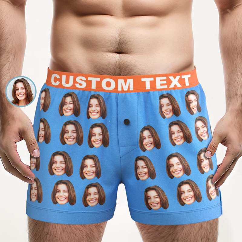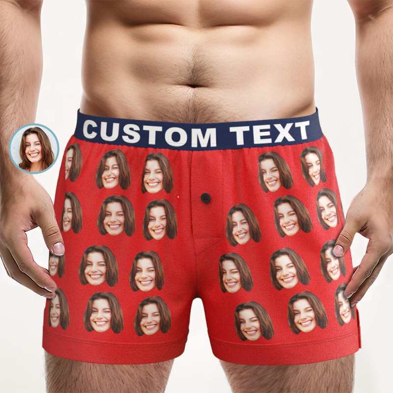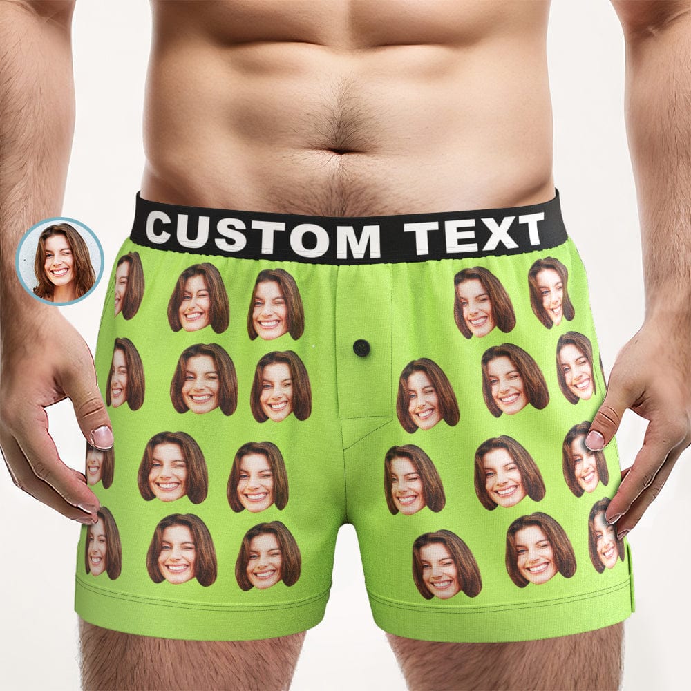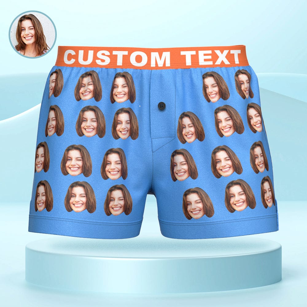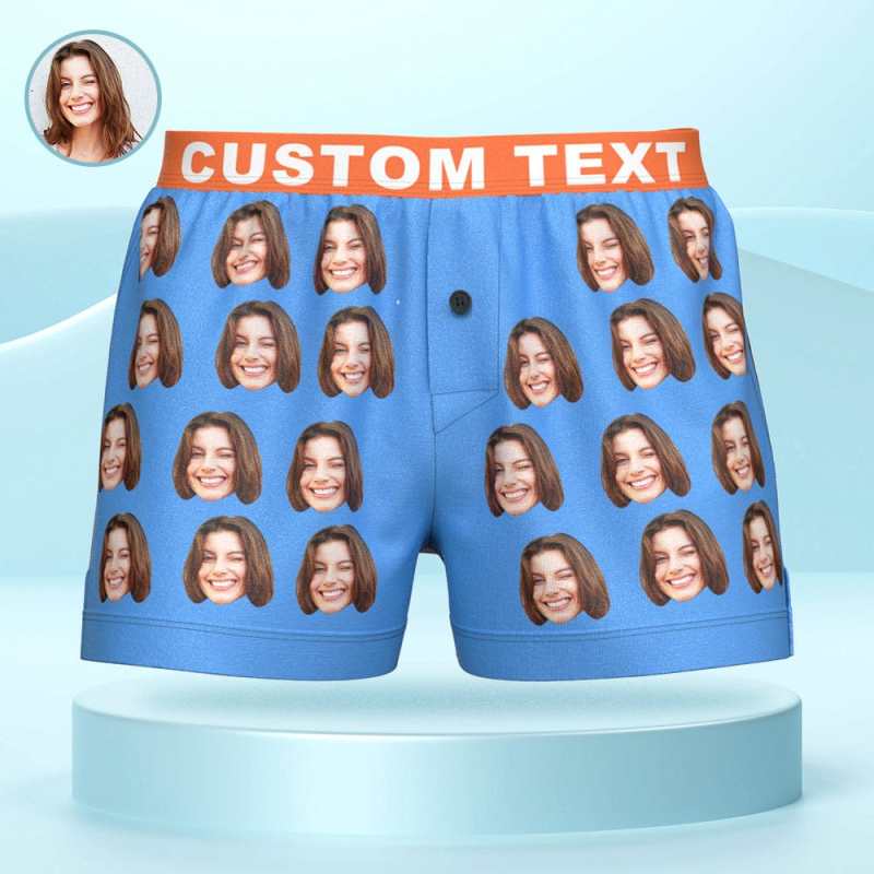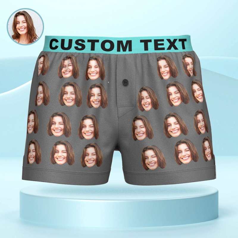 Custom Face Boxer Shorts with Personalized Text on the Waistband Personalized Casual Underwear for Him