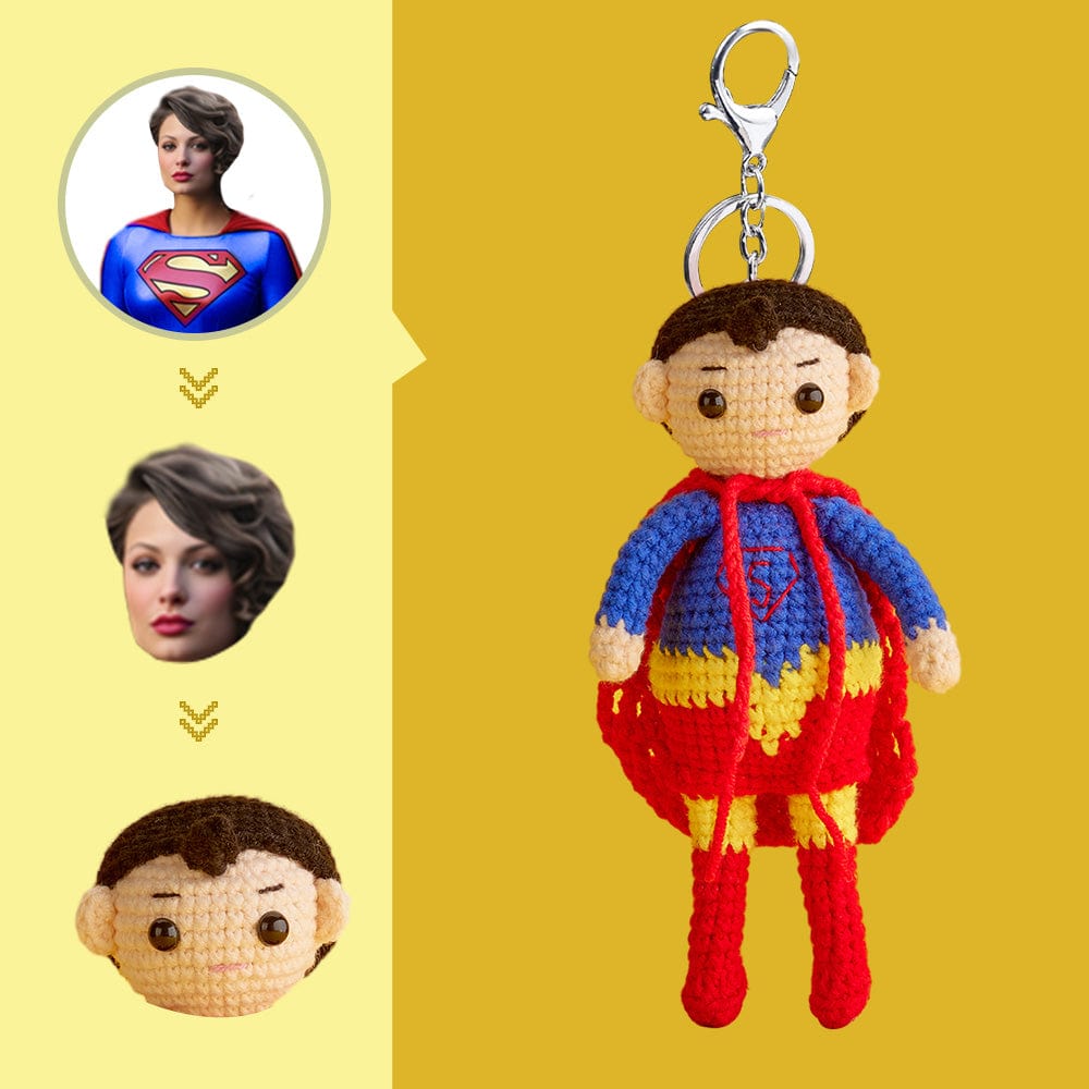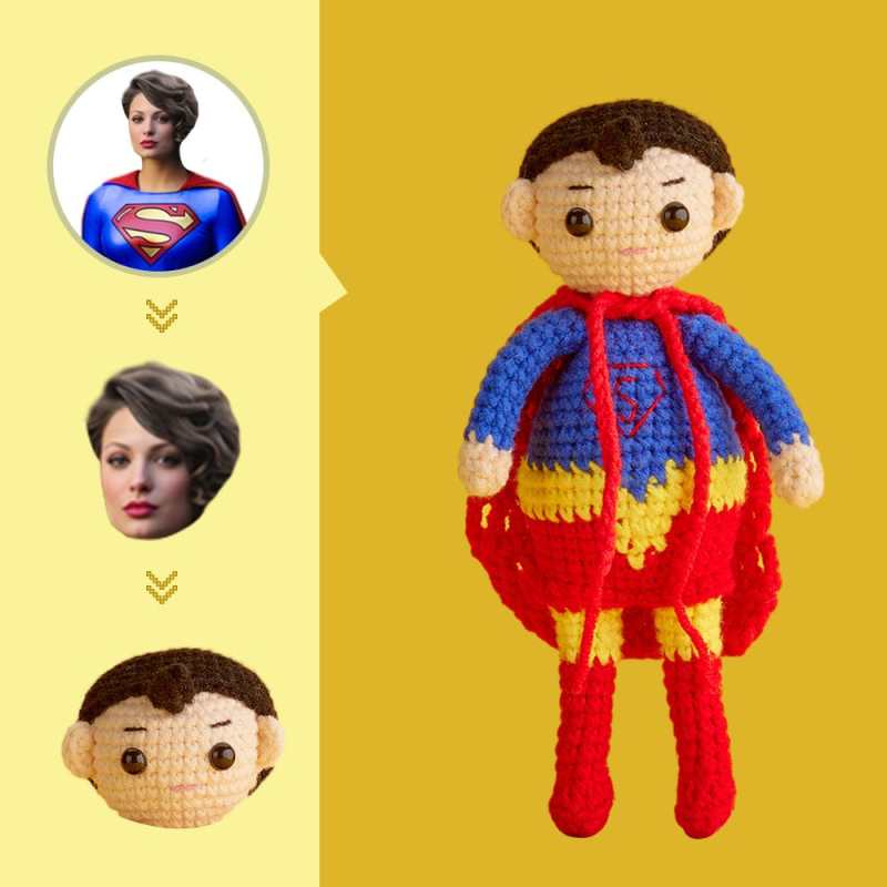 Custom Face Crochet Doll Personalized Handwoven Mini Dolls Gifts - Supergirl