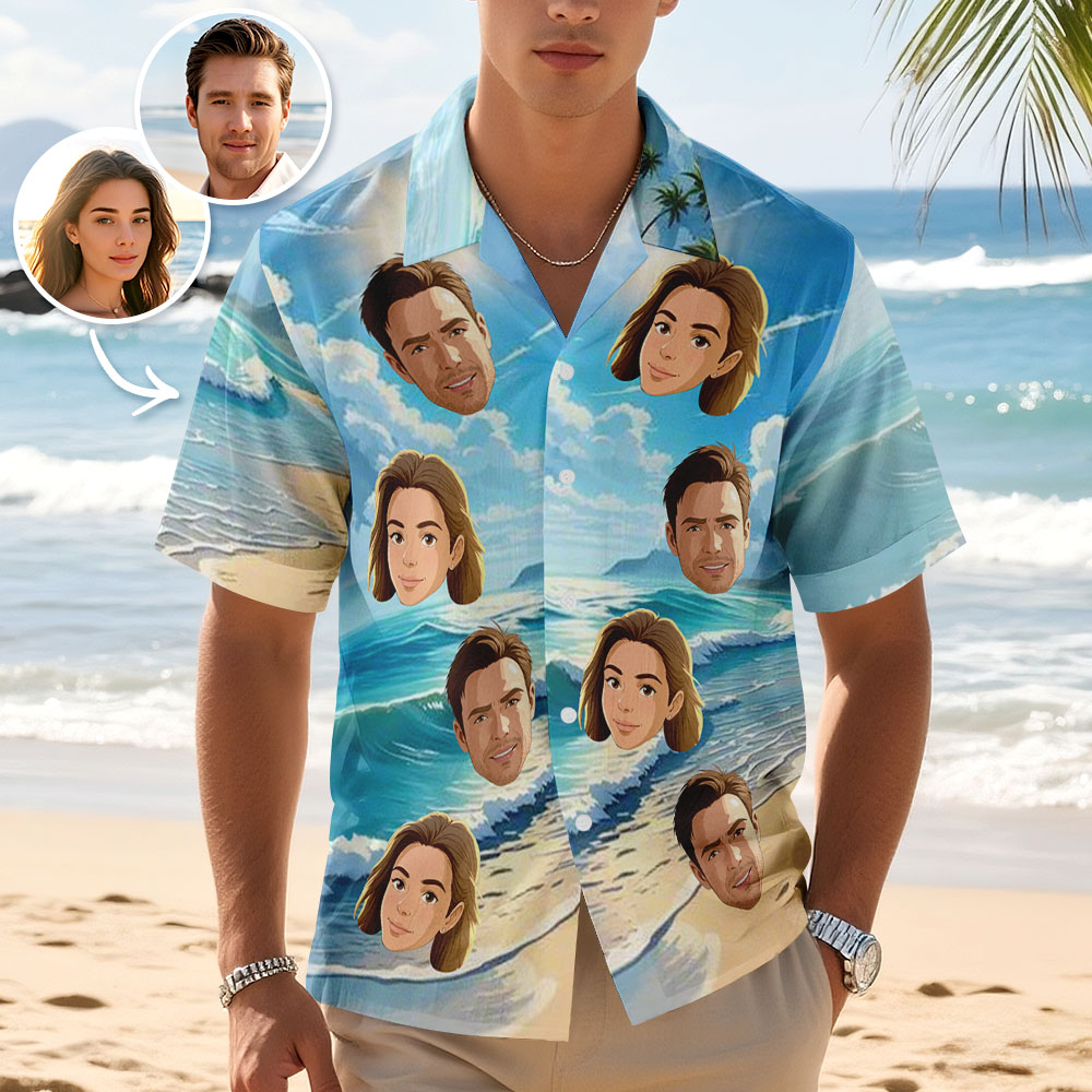 Custom Face Hawaiian Shirt Cartoon Style Aloha Shirt Vacation for Men