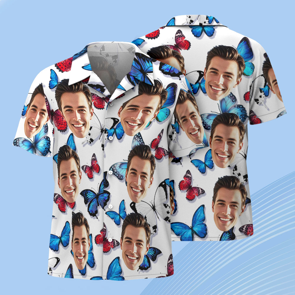 Custom Face Hawaiian Shirt Colorful Butterfly Summer Aloha Vacation for Men