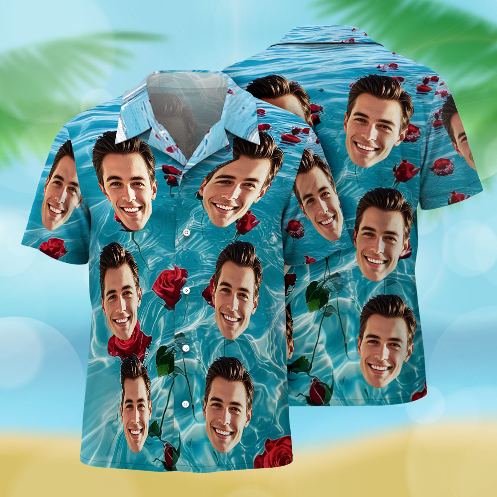 Custom Face Hawaiian Shirt Summer Ocean Rose Aloha Shirt Vacation for Men