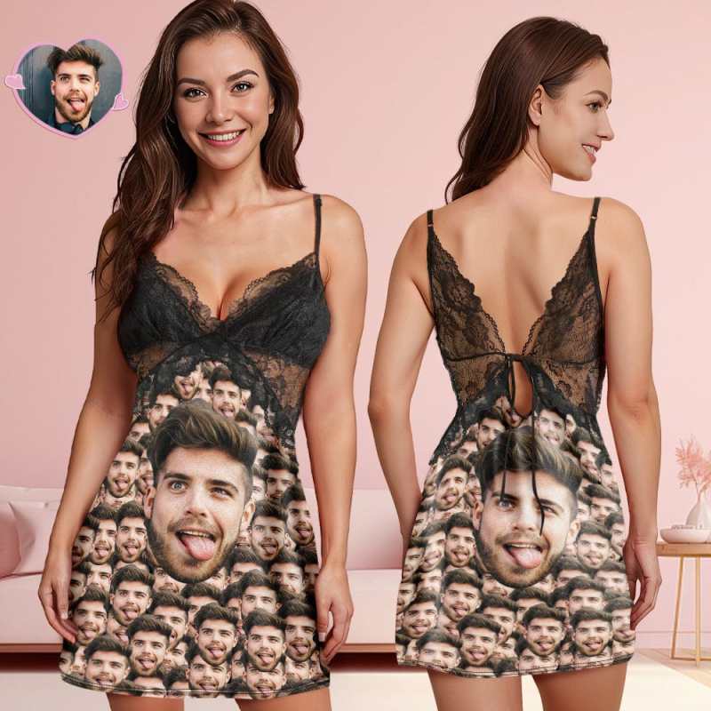 Custom Face Mash Women Lace Sleepwear Personalized Photo Nightwear Gift for Her