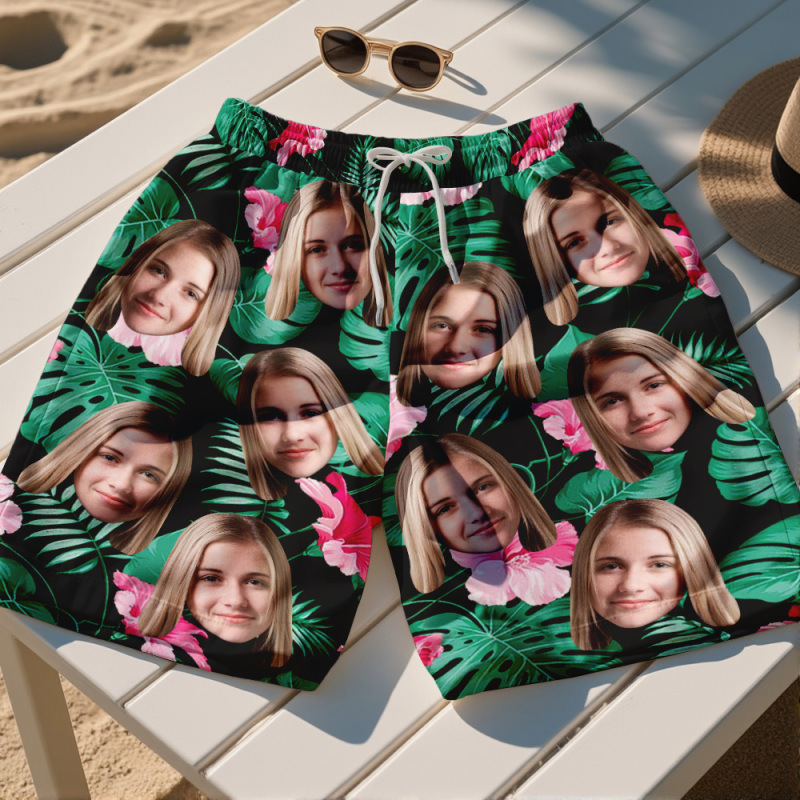 Custom Face Men Swimwear Personalized Face Swim Trunk Face and Name on Beach Shorts